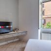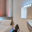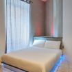La camera Doppia Superior è stata progettata per garantire il miglior comfort ai nostri ospiti.La camera è spaziosa, dotata di un letto matrimoniale retroilluminato con luci led rgb e un materasso in memory foam alto 25cm, 2 poltrone Copacabana, una scrivania in legno, Smart Tv da 42 pollici con Netflix gratuito, una doccia da 90x120 cm con luci emozionali e wifi gratuito.La piccola zona in comune a disposizione è dotata di una macchina Nespresso, un bollitore, un frigorifero con congelatore e un forno a microonde. Ai nostri ospiti offriamo gratuitamente caffè, tè e tisane da gustare. L’acqua che sgorga dai rubinetti è potabile.